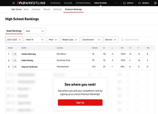 Premium Rankings are only available to subscribers. If you are not a FloSports subscriber, you will be prompted to sign up to view the full Premium Rankings list.